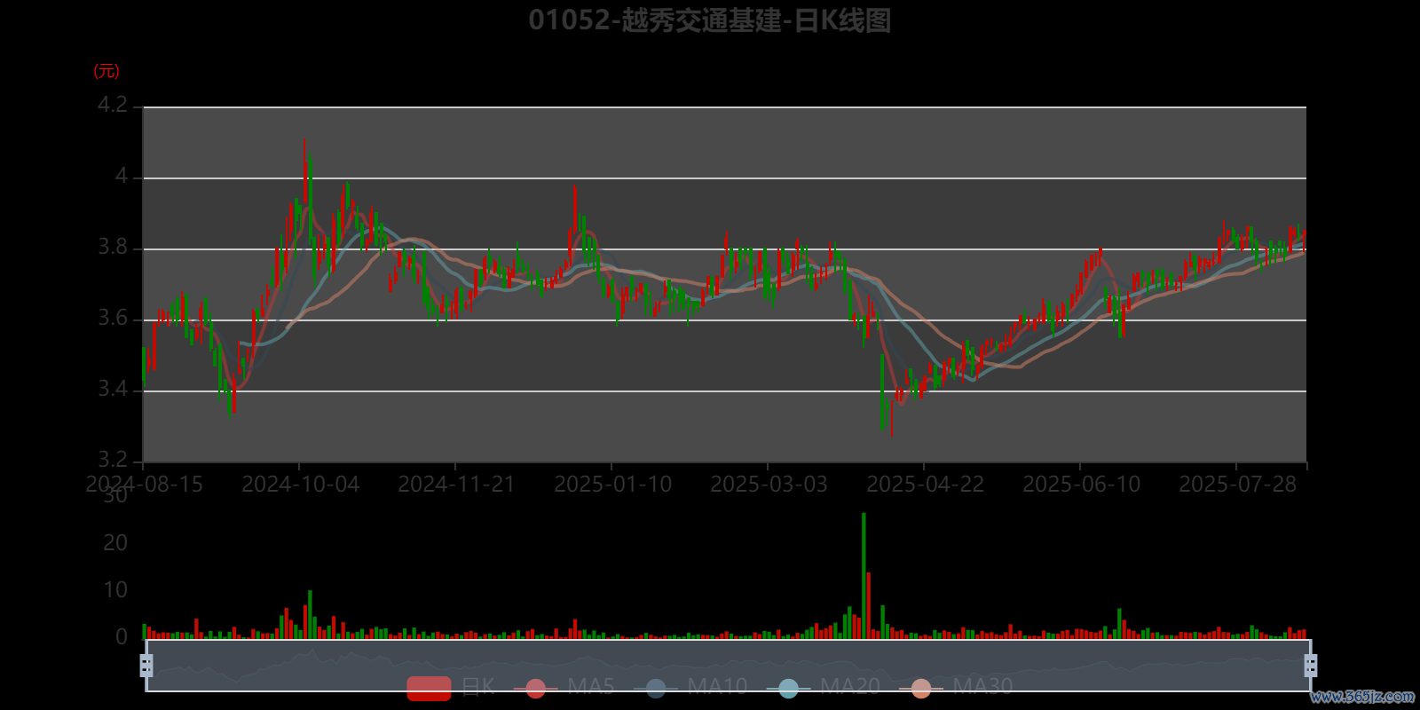 以8月15日收盘价计算,越秀交通基建目前市盈率(TTM)约8.35倍,市净率(TTM)约0.49倍,市销率(TTM)约1.42倍。